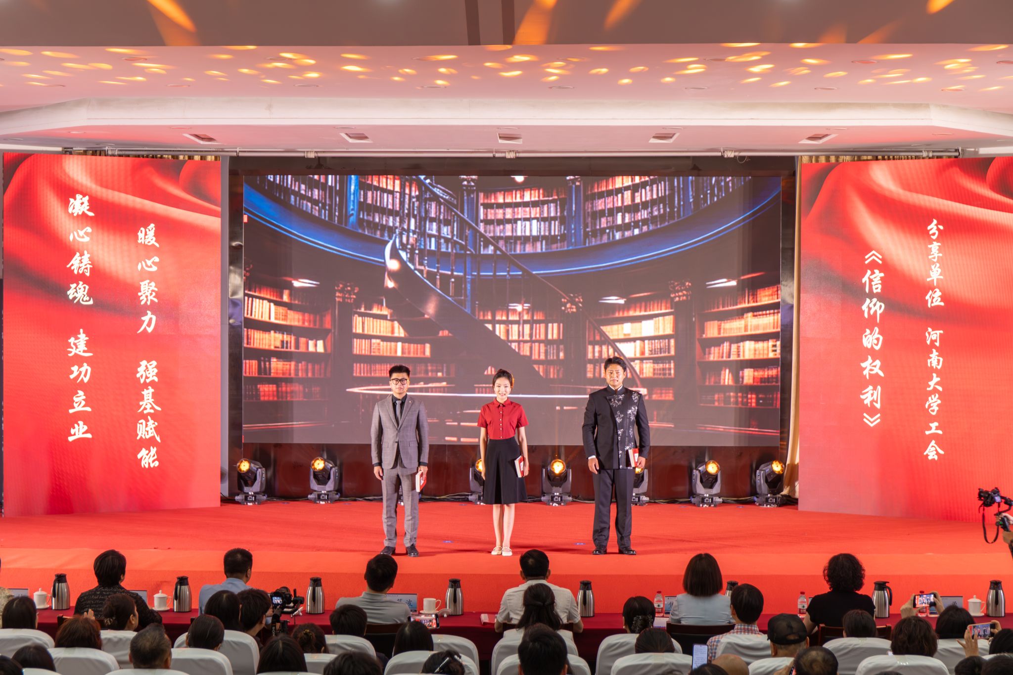 活动以“红色经典”“百年工运史”等五大主题为核心,通过6个示范节目展现书籍魅力。我校参加的节目《信仰的权利》感动全场、精彩纷呈,受到观众欢迎,现场反响热烈,展示了河南大学深厚的文化底蕴和教师的风采。活动创新融入3大艺术表演:开场《流淌的文明》以水文化为引,民乐合奏《大鱼海棠》融合古琴与黄河泥埙,压轴朗诵《典籍里的中国》实现千年诗词对话,现场反响热烈。