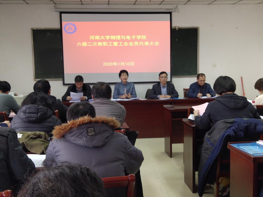 1月10日下午,物理与电子学院六届二次教职工暨工会会员代表大会在物理与电子学院B楼608会议室召开。学院正式代表及列席代表共57人出席大会,会议分为三个阶段,分别由学院党委书记王宏华和工会主席刘寒冰主持。