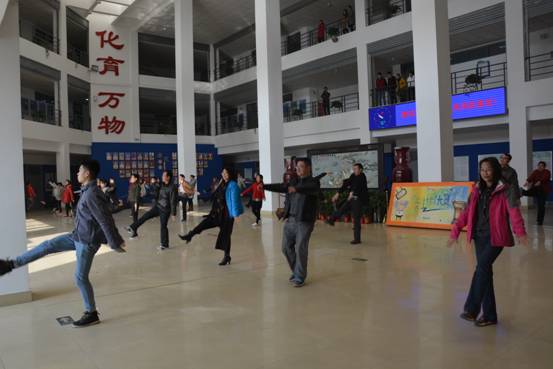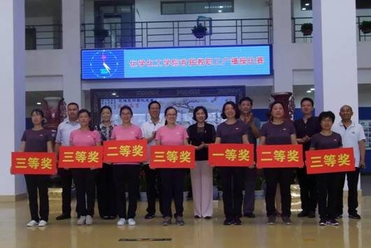 “一二三四五六七八,二二三四五六七八……”伴随着有节奏的音乐,化学化工学院的大厅里正在进行的是“学院教职工广播体操健身活动”。