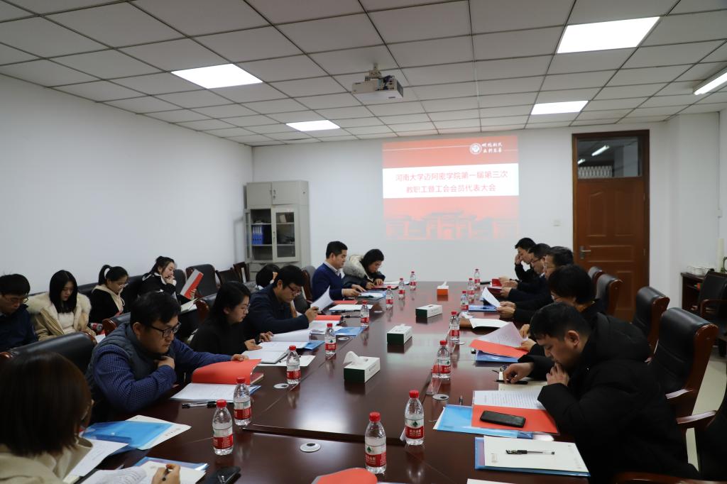 报告后,全体教职工针对报告内容进行了讨论,为学院发展建言献策。与会全体教职工(工会会员)审议并一致通过了《学院工作报告》《工会工作报告》。