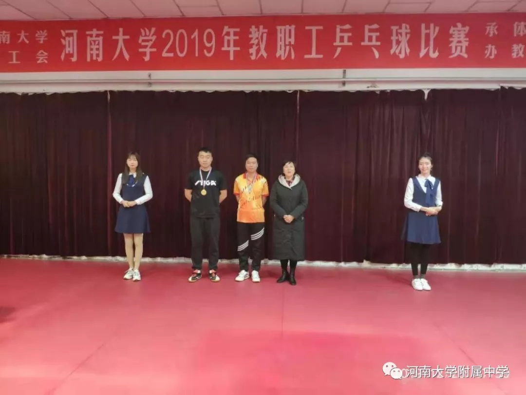 此项活动是由河南大学工会委员会主办,河南大学体育学院、教职工乒乓球协会承办,目的是为了丰富教职工校园文化生活,增强教职工身体素质及乒乓球竞技水平,为教职工提供一个以球会友、展现团队合作精神的舞台。附属中学经过选报,组队参加此项活动。该活动从12月初开始,为期近一个月,经过几轮淘汰赛。最后,附属中学校赵强老师脱颖而出,在男子乒乓球单打比赛中夺得男子单打第一名,获一等奖。