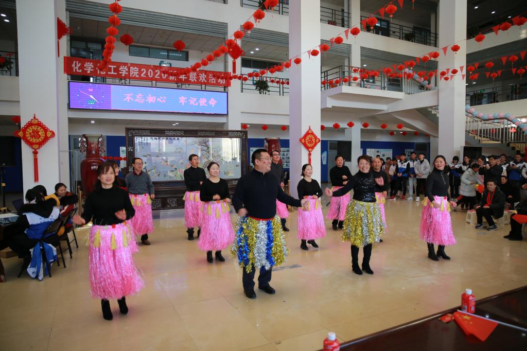 活动以“四色鸽舞蹈协会”同学们动感十足的舞蹈表演作为开场。测试中心工会小组的老师们戴着喜庆的红围巾,为大家演唱了《明天会更好》、《三百六十五个祝福》等暖意融融的歌曲。伴随着“齐不隆咚呛”的鼓点,高分子科学工会小组的全体老师为大家带来了精彩热闹的三句半《夸夸我家》,夸学院建设、夸老师实干、夸学生勤奋,还讲到实验安全,面面俱到,笑点不断。化院老师们除了教学科研一把抓,在唱功上也是实力不俗,有机组的徐浩和张光武老师、无机组的孙琳和张超老师分别给大家带来了优美动听的歌曲,实验中心刘宝林老师的独唱《听说》惊艳全场,那一句沧桑低沉的“你好吗”道出了浓浓的真情实感。化工和应化工会小组的《我和我的祖国》大合唱、纳米中心的歌曲串烧将晚会推向了一个小高潮,大家都不自觉地跟着节拍摇起了手中的小国旗,学院大厅里洋溢着满满的爱国情。纳米中心的外国友人还献唱了具有浓郁异国风情的印度歌曲,引来掌声阵阵。此外,分析组王新海老师以及物化组庞靖宇和胡媛媛老师的朗诵也带给大家带来别样的艺术体验。将晚会气氛推向顶点的节目是由行政工会小组带来的草裙舞《我劳动我快乐》。由学院党委书记乔梁带领的学院领导班子和行政管理人员舞蹈队身着靓丽彩裙,伴着欢快的音乐,为大家带来了一场欢乐至极的视觉盛宴。平时忙于学院管理事务的各位领导老师用热情欢快的舞蹈,点燃了全场的气氛。掌声、尖叫声和相机快门声充满了整个学院大厅,现场成了欢乐的海洋。