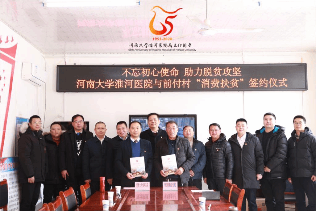为持续推进“不忘初心、牢记使命”主题教育的开展,积极响应学校党委扶贫工作号召,作为河南大学淮河医院65周年院庆年的开篇大事,1月3日上午,河南大学淮河医院党委书记刘志勇,工会主席霍雷带领着相关科室负责人及驻村扶贫工作队员一行来到通许县竖岗镇前付村看望慰问了河南大学驻村人员并签订了2500袋、三万余斤、价值五万元的大棚芹菜的“消费扶贫”协议。