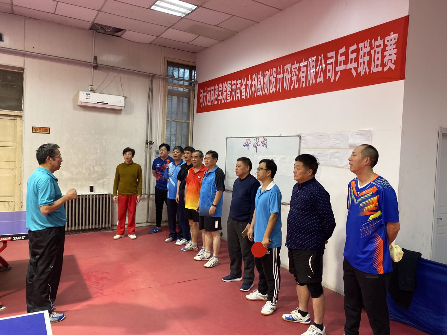 2019年11月26日下午,由河南大学教职工乒乓球协会承办的“河南大学迈阿密学院与河南省水利勘测设计研究有限公司乒乓球联谊赛”成功举行。河南大学教职工乒协执行会长董舫教授主持了本次联谊赛的开幕式。迈阿密学院院长赵新顺教授致欢迎辞,他希望通过联谊赛,切磋球技,增进友谊,享受快乐,健康身心。河南省水利勘测设计研究有限公司董事长翟渊军随后发表了讲话,对河南大学教职工乒乓球协会为本次承办此次比赛所做的尽心安排,他由衷地表达了诚挚谢意。