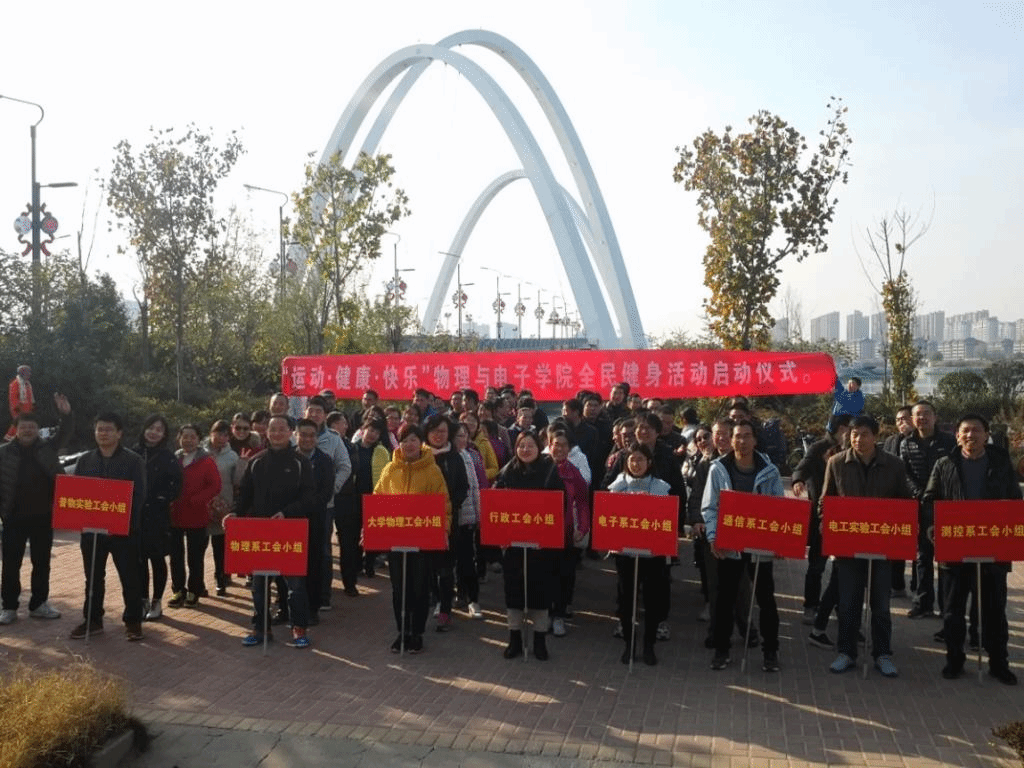 为丰富教职工业余文化生活,引导和激发广大教职工参与体育运动的积极性和主动性,11月28日下午,物理与电子学院在东京大道彩虹桥北侧举行“运动·健康·快乐”全民健身活动启动仪式。全院教职工在各工会小组的组织下参加了此次活动。