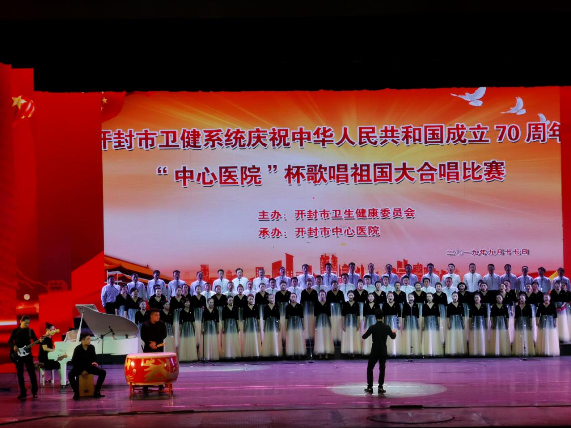 为庆祝建国70周年华诞,感受中国人民70年奋斗历程,以“我和我的祖国-不忘初心砥砺前行”为主题的开封市卫生健康系统庆祝建国七十周年红歌合唱比赛于9月17日,在小宋城礼堂如火如荼的进行。