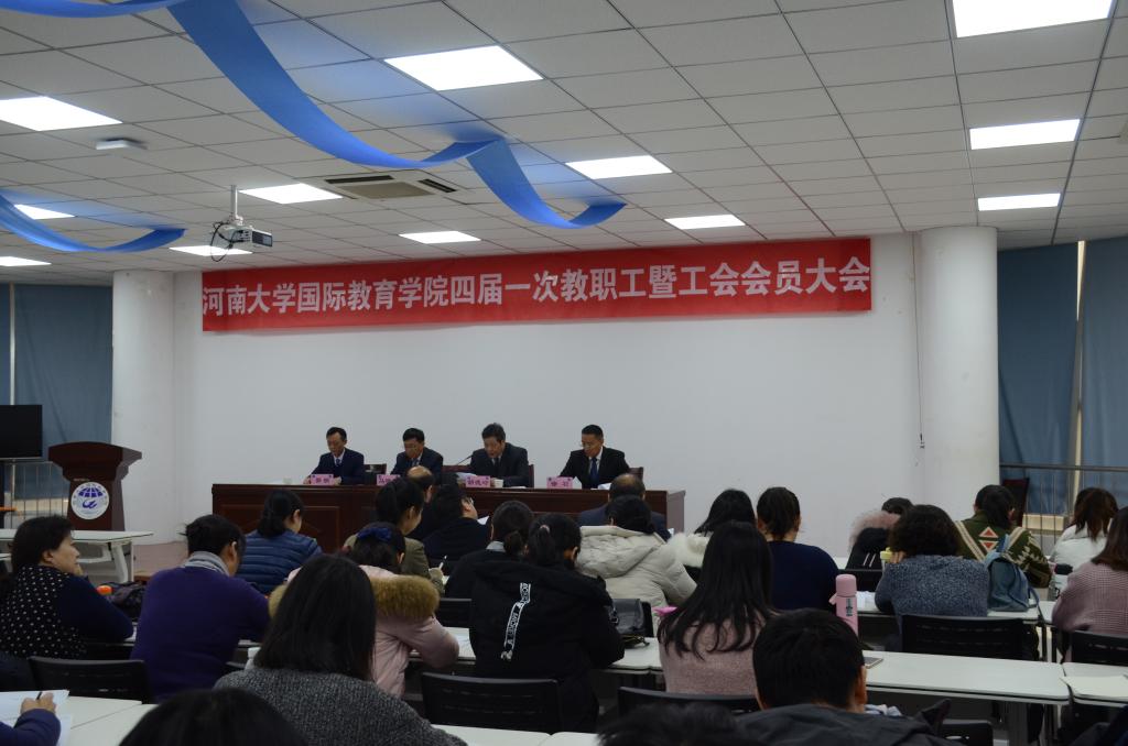 12月27日下午,国际教育学院四届一次教职工暨工会会员大会在金明校区23号楼3楼学院会议室举行,学院全体教职工及特邀代表出席大会。会议分两阶段进行,分别由副院长郭明、院党委副书记徐初主持。