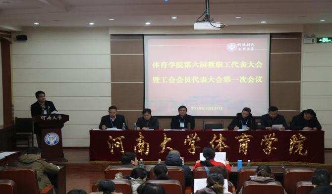 2018年12月27日下午,体育学院第六届教职工代表大会暨工会会员代表大会第一次会议在学院电教室隆重召开。学院教职工暨工会会员正式代表、特邀代表和列席代表参加了本次会议。会议由体育学院党委副书记王建国主持。