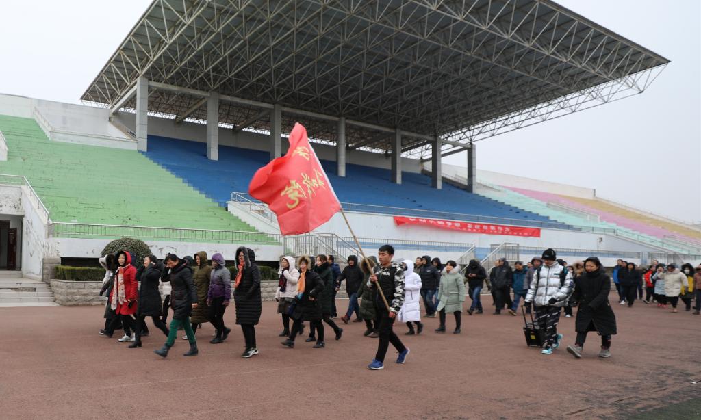 教师们按工会小组有序集合,张亚歌在起点处发令,拉开了健步走的序幕,冬月的体育场寒风凛冽,但教师们兴致勃勃,其乐融融。活动期间,不断有学生自动加入,师生都表现出极大的运动热情,一路欢声笑语,步伐矫健的走向终点。