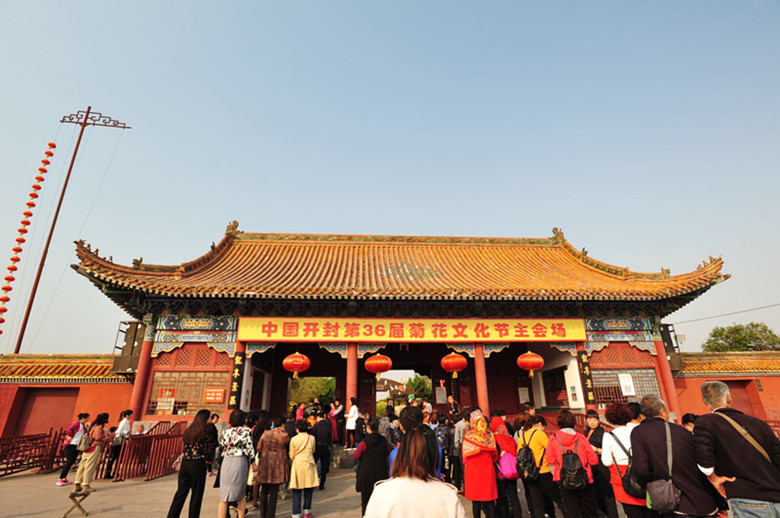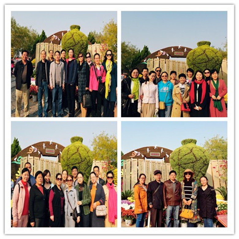 下午2:30分,全体人员在龙亭公园南门口集合,一起入园参观。本届菊花文化节以“菊韵开封城,花开中国梦”为主题,公园的菊花造景分外别致,朱红色的菊廊点缀着各色菊花,巨大的花篮里是精心培育的多色菊花,再配合古装演出,真是美不胜收,目不斜接。