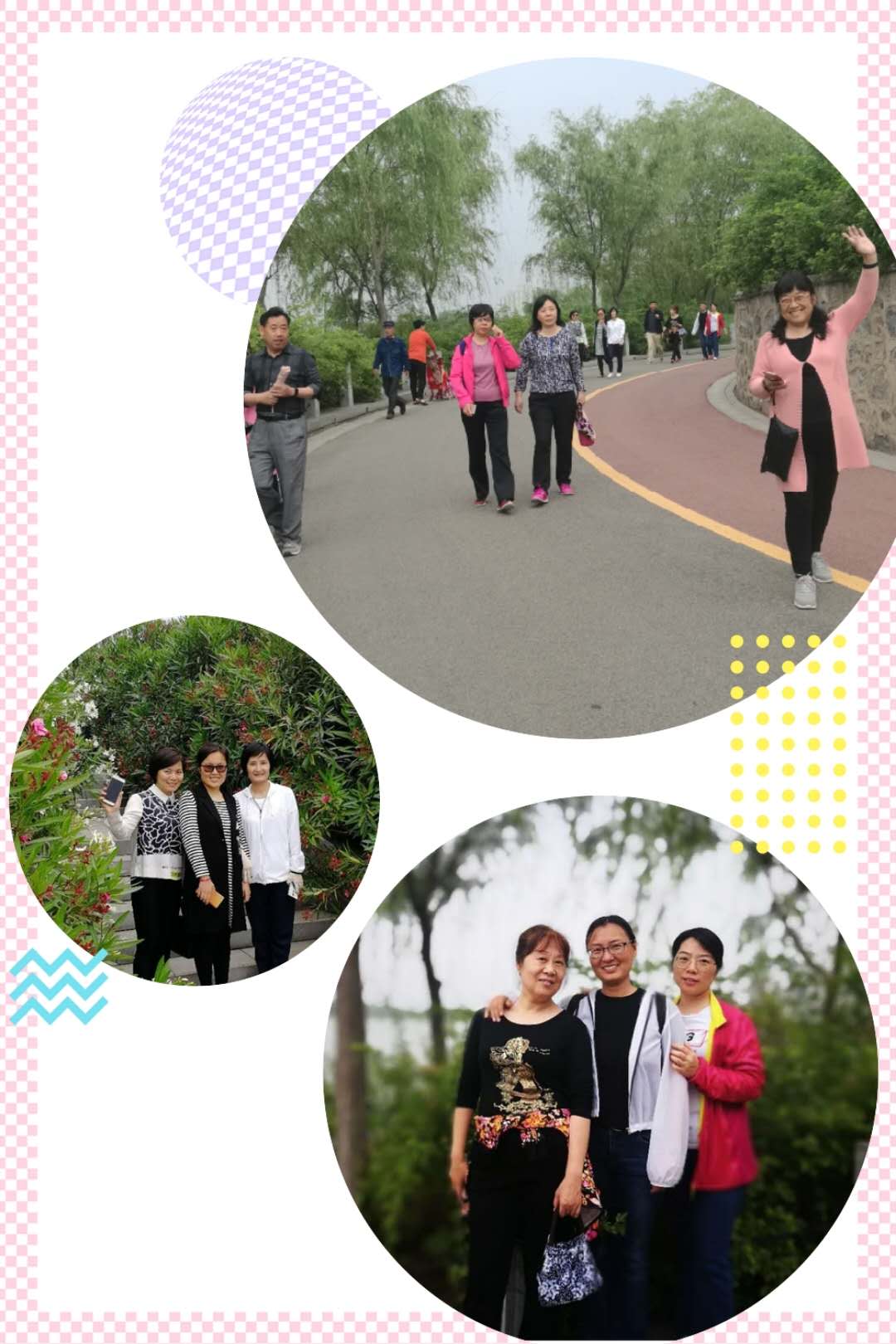 雨后初晴,空气清新,老师们兴致盎然,昂首挺胸,大步向前。在风景宜人的汴西湖畔,大家一边欣赏着沿途美丽的风景,一边尽情地享受健步走的独特魅力。中药教研室的李昌勤和袁王俊两位老师还不时停下来指点着湖边栽种的植物花卉,为大家科普植物学知识;爱美的女教师们三五结伴,频频按动快门留下美丽的倩影……一路欢声笑语,一路心与心的交融,不少老师感慨说:平时闷在实验室里搞研究、忙碌在教室和家的“两点一线”,竟不知咱开封还有这样醉人的风景!真为我们的家乡感到自豪和骄傲啊!