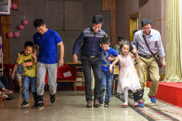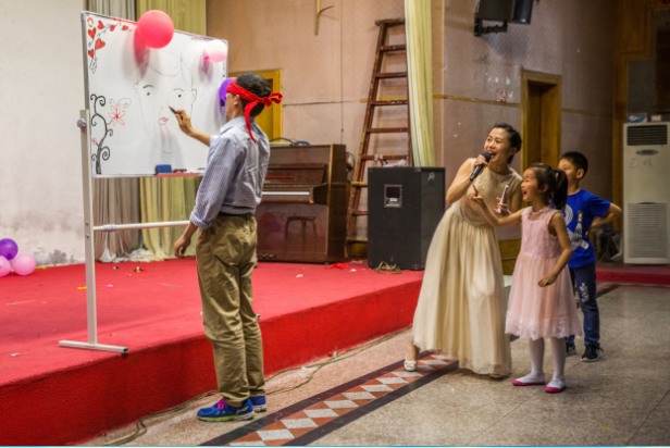 活动中间还穿插了两个亲子游戏,以增强孩子与家长之间的互动性。“两人三足”游戏中,充分体现了父母与子女之间心连心的默契,他们互相搀扶,步伐一致,协同向前的画面倍感温情。在“画嘴巴”游戏中,孩子们童言无忌的指挥和偏移错位的红嘴巴,让我们看到了忙于事业的家长们天真烂漫的另一面。