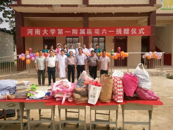 在国际六一儿童节来临之际,5月31日上午,一附院在所帮扶的祥符区半坡店乡常庄村邢楼小学举行了“六一”捐赠仪式。一附院为该小学捐赠电脑15台,援助其建成电脑室。一附院工会主席、驻村工作队长席子明,一附院护理部主任、工会女工委员会主任张水兰带领本院女工委员,给孩子们捐赠了书籍、衣服、文具、玩具等物品。