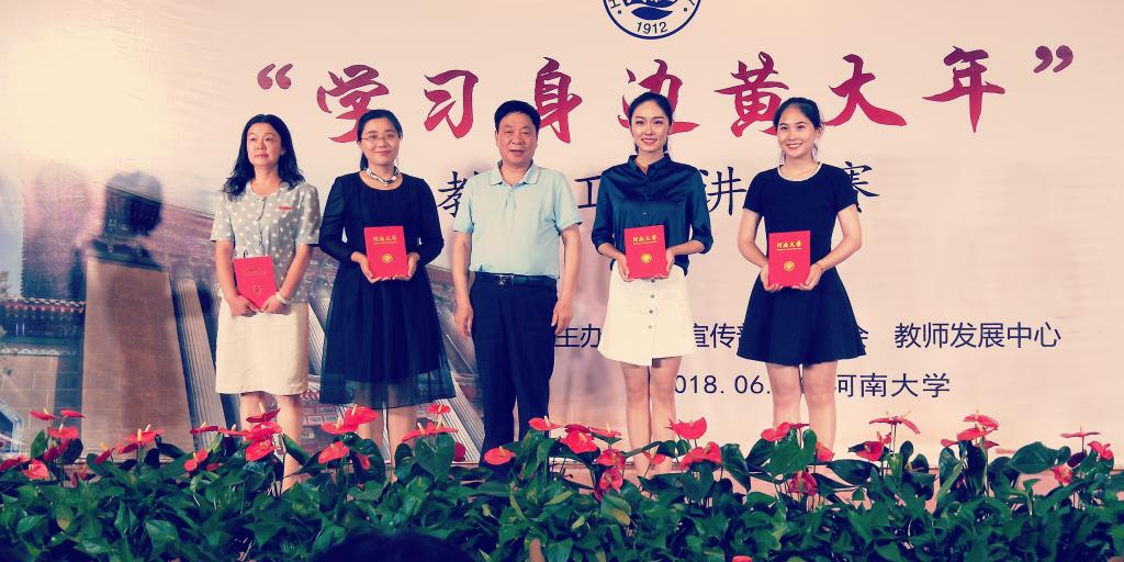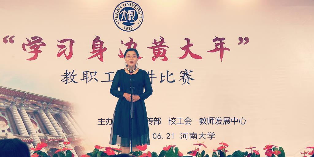 为贯彻落实习近平总书记就黄大年同志先进事迹重要批示,进一步加强教师职业道德建设,充分展示广大教师爱岗敬业、无私奉献的精神风貌,引导广大教职工积极为学校“双一流”建设建功立业, 6月21日下午,由党委宣传部、校工会、教师发展中心联合主办的河南大学“学习身边黄大年”教职工演讲比赛决赛在金明校区举行,校党委书记、师德建设委员会主任卢克平,副校长、师德建设委员会副主任杨中华,校纪委书记、师德建设委员会副主任杨朝阳,校工会主席、师德建设委员会副主任沈洁霞等出席活动,学校师德建设委员会成员单位负责人,以及近三百名师生到场聆听。