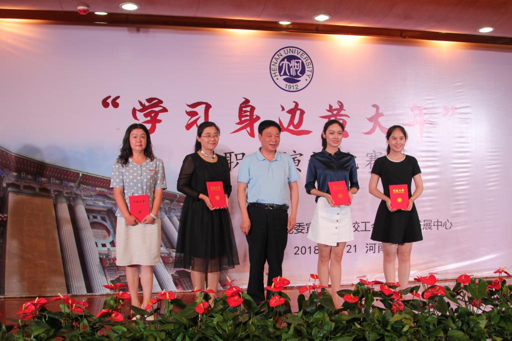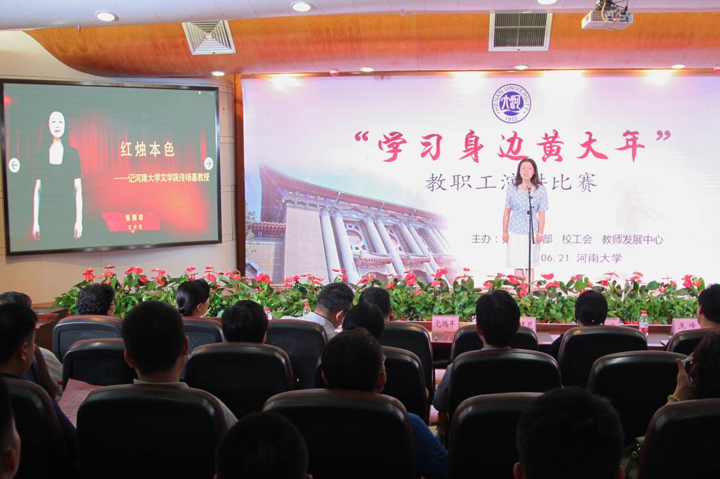 师德铸师魂,师风为师本。6月21日下午,河南大学“学习身边黄大年”教职工演讲比赛在金明校区行政办公楼二楼报告厅举行。校党委书记、学校师德建设委员会主任卢克平等领导老师莅临活动现场。比赛由文学院副教授蔡玉芝、新闻与传播学院播音与主持艺术系主任钟倩、校工会副主席焦峰等担任评委。校党委宣传部副部长、新闻中心主任刘波,校工会副主席宋菊芳担任本次比赛仲裁。