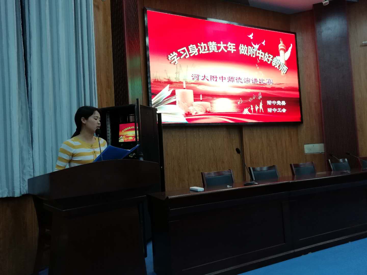 本次演讲比赛是为进一步加强教师职业道德建设,充分展示广大教师爱岗敬业、无私奉献的精神风貌,提高我校教师的职业道德水平,激励教师为人师表、教书育人,并响应河南大学关于学习身边黄大年的活动号召, 附属中学工会决定在全校举办“学习身边黄大年 做附中好教师”为主题的演讲比赛。