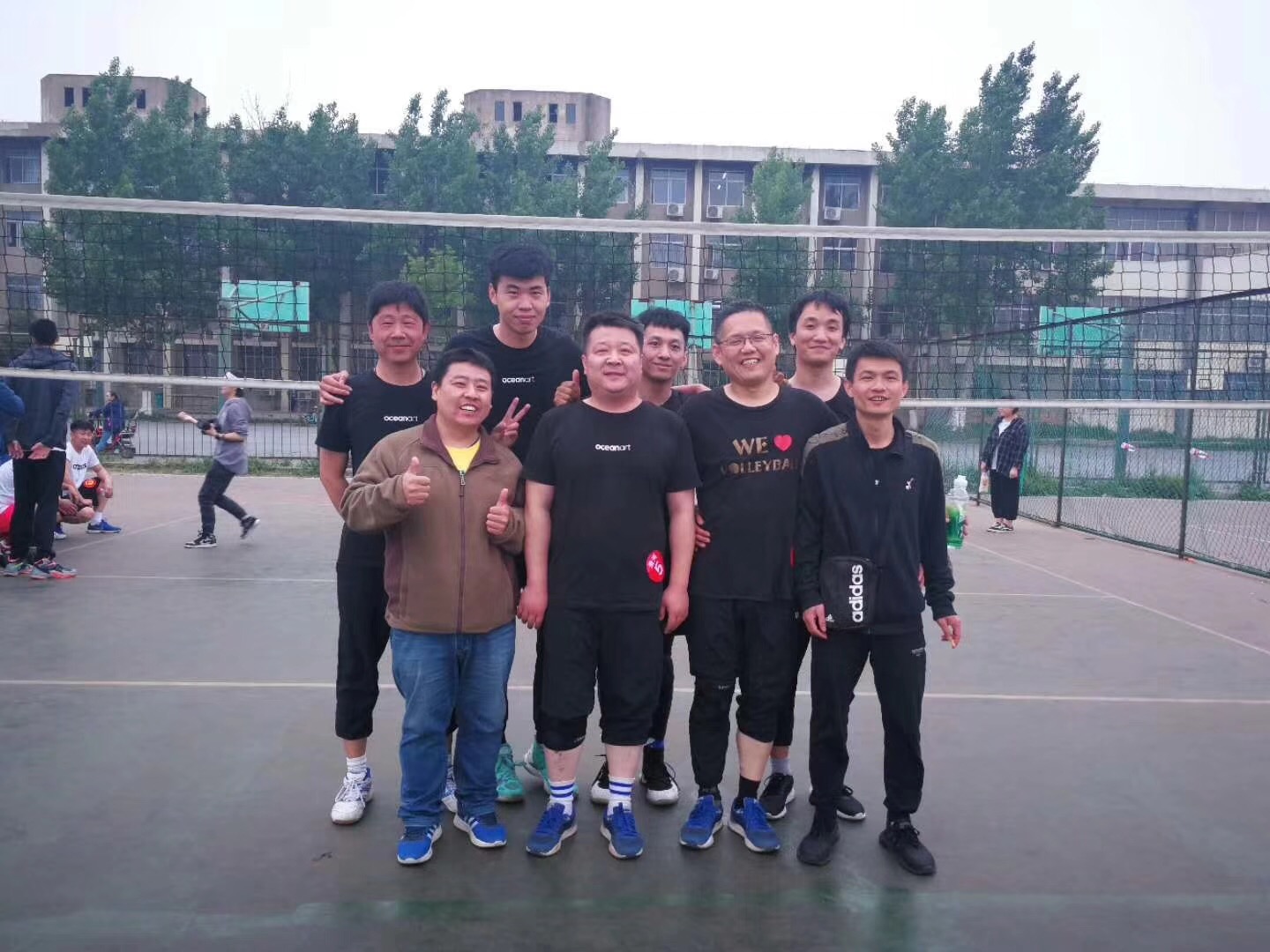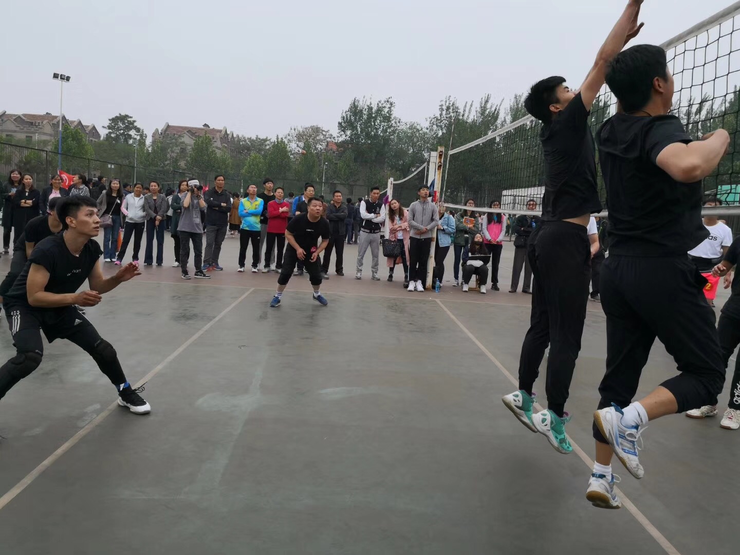 赛场上淮医主攻手、副攻、二传都配合默契每一次的大力扣杀及吊球都引来观众的叫好和掌声,。队员们灵活的身姿和精彩的球技将冠亚军争夺赛演译得更像是男排的表演赛。赛场外淮医工会人员、女排队员都摇旗呐喊,擂鼓助威。最终以2:0战胜以手,捍卫了淮河临床学院男排的冠军之位。