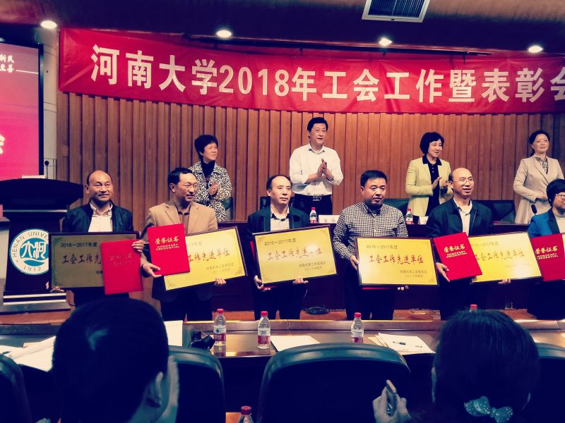 为表彰先进,树立典型,学校于4月26日召开了河南大学2018年工会工作暨表彰会,对2016-2017年度工会工作先进集体和先进个人进行了表彰。共表彰工会工作先进单位16个,工会新闻宣传工作先进集体3个。化学化工学院喜获校工会工作先进单位和工会新闻宣传工作先进集体荣誉称号。