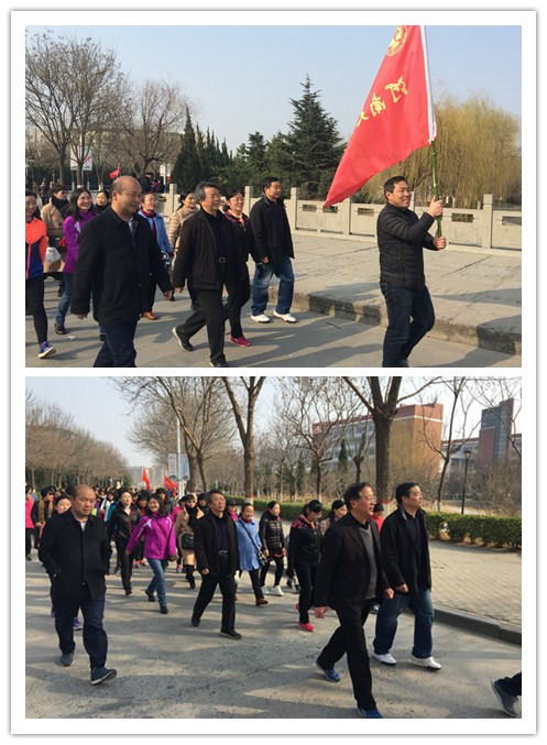 下午三点,活动正式开始,河南大学工会主席沈洁霞致开幕词。她指出,本次活动是为迎接第108个“三八”国际劳动妇女节,校工会组织的三八主题月活动之一,希望通过健步走活动鼓励同志们积极锻炼身体,展示我校女教职工蓬勃向上、积极进取的精神风貌。之后,各单位整齐列队,在裁判长指挥下有序出发。