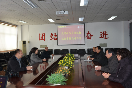 1月4日上午,伴随着2018年的第一场瑞雪,校工会主席沈洁霞一行来到化学化工学院,进行2016-2017年度“工会工作先进单位”的考核验收。化学化工学院党委书记方蒙,行政副院长、工会主席杨更须及部分工会委员参加了验收会。方蒙同志首先带领考核组成员参观了学院一楼的文化长廊和二楼的名言警句长廊,其中“以院为家以校为荣以国为国以天下为天下”这张展示牌吸引了大家的注意力,方书记向大家介绍了提出这几句话的初心,希望学院每一位老师要树立“以院为家,以校为荣”的理念,要有“以国为国,以天下为天下”的胸怀,培养老师们的主人翁精神。随后,考核组来到化学化工学院2楼会议室,听取了方蒙同志的学院工作汇报。他简要介绍了学院党建、工会、团学、教学、科研等工作在这两年取得的一系列成绩和学院采取的措施。方蒙书记表示工会工作就是党建工作,学院对工会工作非常重视,在校工会的正确领导和大力支持下,化学化工学院着力加强学院文化建设,积极解决教职工反映的问题,美化学院环境,关心教工身心健康,组织教职工每天做广播体操,开展元旦迎新趣味联欢等一系列关爱教工、凝聚人心的活动。沈主席对学院的工作表示了肯定,认为学院文化建设对于团结教职工、促进学院和谐发展具有重要的意义。汇报结束后,沈主席一行还检查了学院活动室,参观了工会宣传窗。