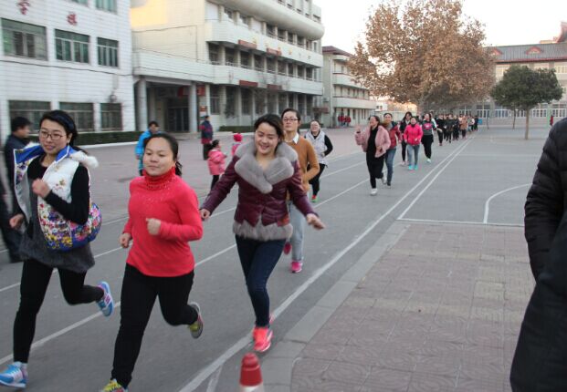 2015年12月17日下午4:20分,河大附中东操场热火朝天,全校300余名教师在操场上奔跑着、你追我赶,这不是《奔跑吧,兄弟》的现场,而是河大附中正在举行冬季教工健身跑活动。
