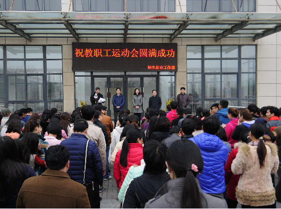 河南大学工会副主席宋菊芳到民生学院为教职工冬季越野赛祝贺,希望民生学院全体教职工在活动中能发扬“不怕吃苦,互帮互助”的优秀品质和“友谊第一,比赛第二”的活动精神,努力使教职工冬季越野赛取得圆满成功。