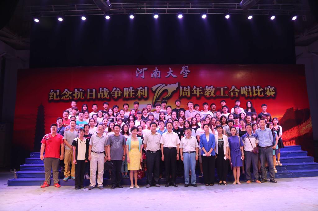 6月17日下午,“铭记抗战历史,传承河大精神”——河南大学纪念抗日战争胜利七十周年教工合唱比赛决赛在明伦校区大礼堂圆满落下帷幕。艺术学院作为承办单位,在比赛中贡献突出,荣获 “特别贡献奖”。