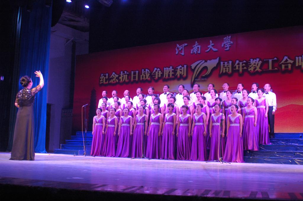 6月18日下午三点,明伦校区大礼堂座无虚席,由我校党委宣传部与校工会主办、艺术学院承办的以“铭记抗战历史,传承河大精神”为主题的“纪念抗日战争胜利七十周年”教工合唱比赛决赛在大礼堂精彩上演,图书馆教工合唱队表现出色,获得教工合唱比赛三等奖。