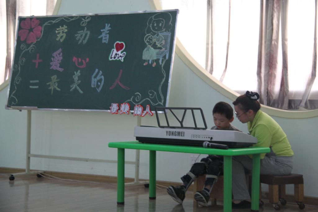 孩子们在护士妈妈及康复老师的帮助下表演了精心准备得电子琴独奏、合唱等节目。淮河医院的爱心职工也在康复老师的指导下给孩子们做康复功能训练。看着孩子们露出的笑脸,既为这些被父母遗弃的残疾儿童感到痛心,同时也为孩子们能生活在条件配置较好的园区内接受康复训练而感到欣慰。
