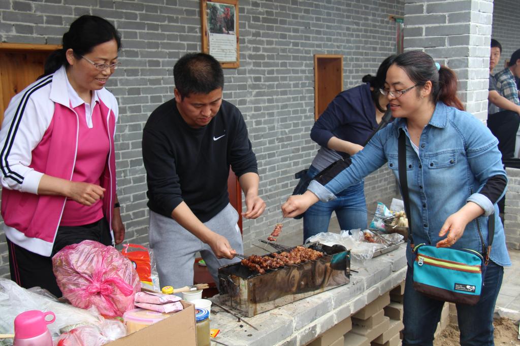 活动按教研室分成8个小组,各小组明确分工,提前各自准备器具、食材。9:30活动开始,场面顿时热闹起来,拾柴、生火、串羊肉、刷油、翻转、洒孜然粉、辣椒面……整个过程让大家着实感受了“自己动手丰衣足食”的乐趣。席间大家互相品尝美味、及时总结经验,交流心得,整个场面热闹非凡。