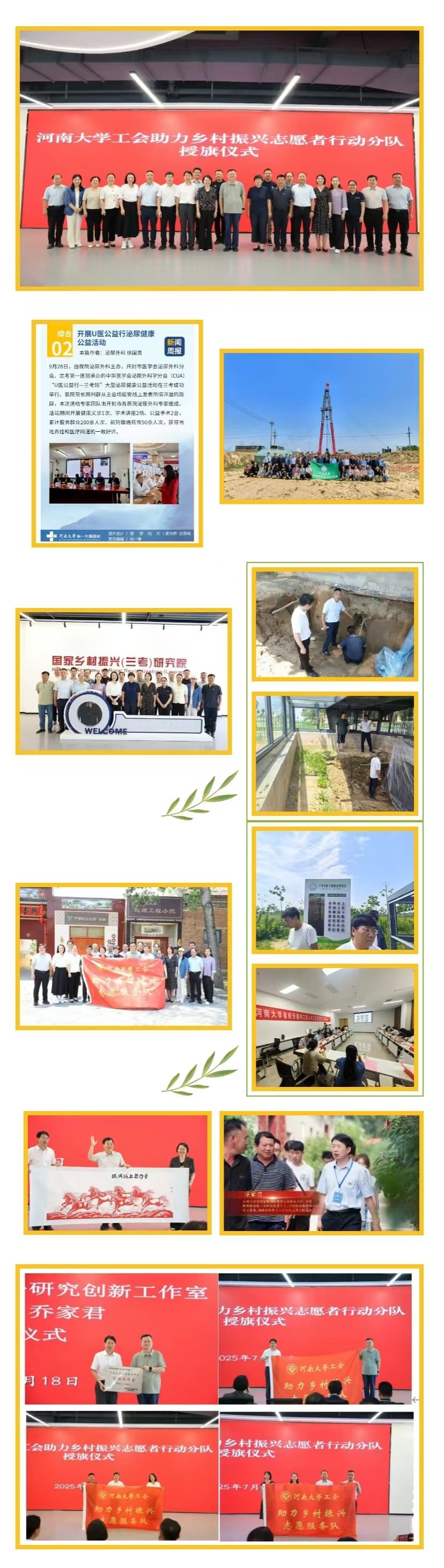 将论文写在中原沃土,将智慧贡献在助力乡村振兴大道上,河南大学一直在行动。校工会今后将继续依托省、校劳模和工匠人才创新工作室,组建若干支助力乡村振兴志愿服务行动分队,利用劳模和工匠人才创新工作室品牌特色及资源,充分发挥分队专业特长,打造乡村振兴“精准帮扶矩阵”。聚焦教育、产业、技术、民生四大领域精准发力,将创新工作室技术、人才优势转化为乡村振兴动能,推动教育提升、农业提质、生态优化、民生改善。近年来,河南大学助力乡村振兴志愿服务行动活跃在中原大地,为实现确保高质量建设现代化河南、确保高水平实现现代化河南,谱写新中原更加出彩的绚丽篇章贡献河大智慧和力量。
