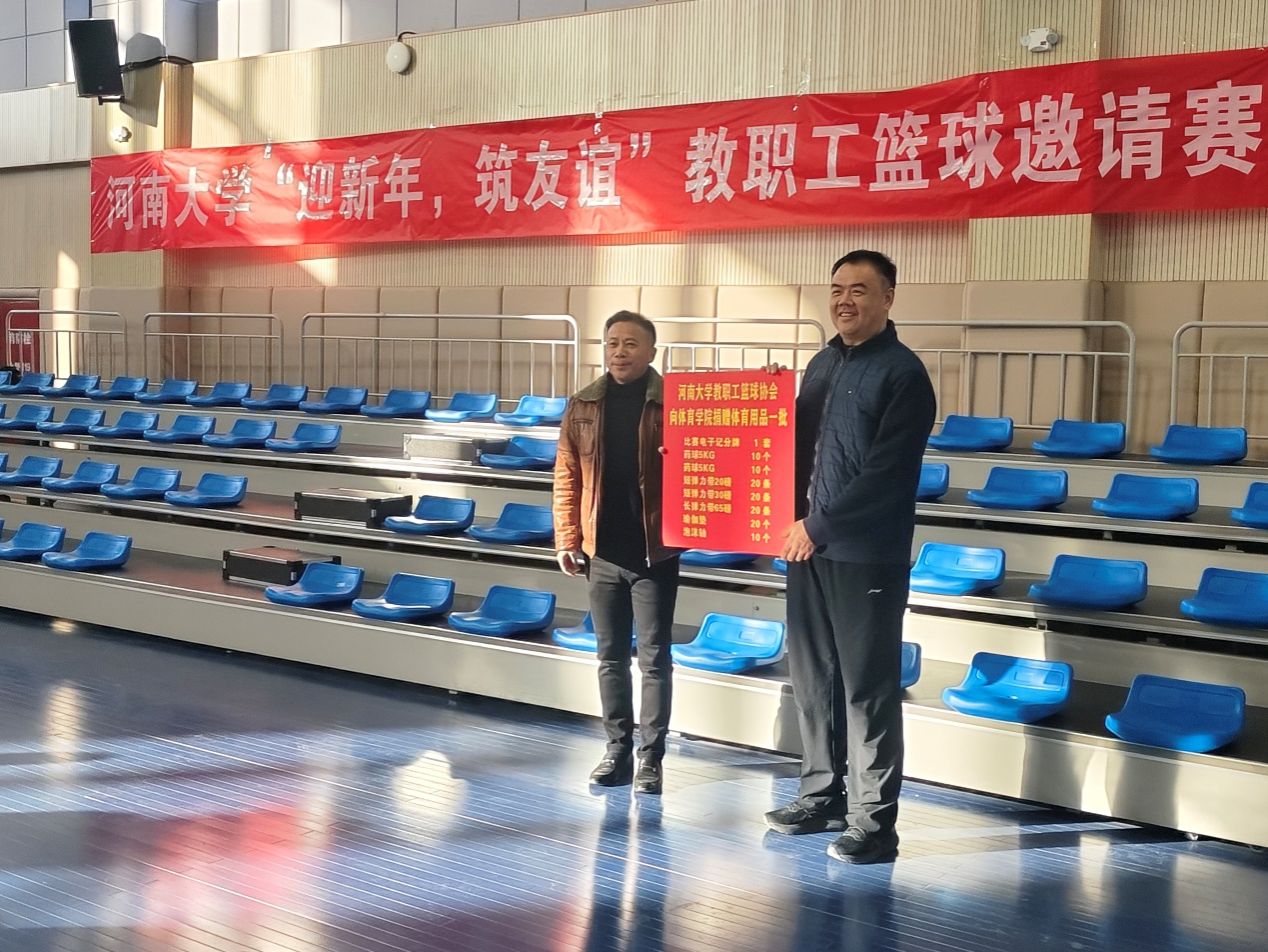 开幕式上还举行了温馨的捐赠仪式。校教职工篮球协会向体育学院捐赠了一批体育器材,以实际行动支持学院的教学训练和人才培养工作,体育学院代表接受捐赠并致以诚挚谢意。