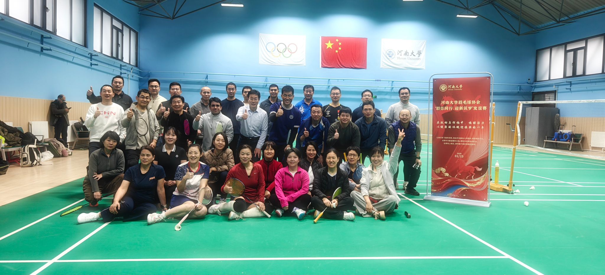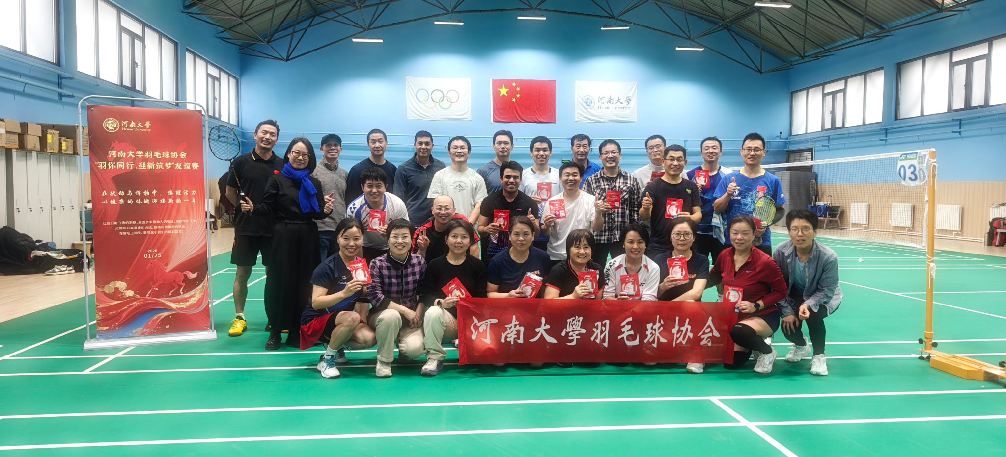 1月25日,河南大学教职工羽毛球协会“羽你同行,迎新筑梦”迎新春团体赛在明伦校区羽毛球馆顺利举行。校工会副主席徐飞出席开幕式并致辞。开幕式由协会秘书长刘华侨主持。