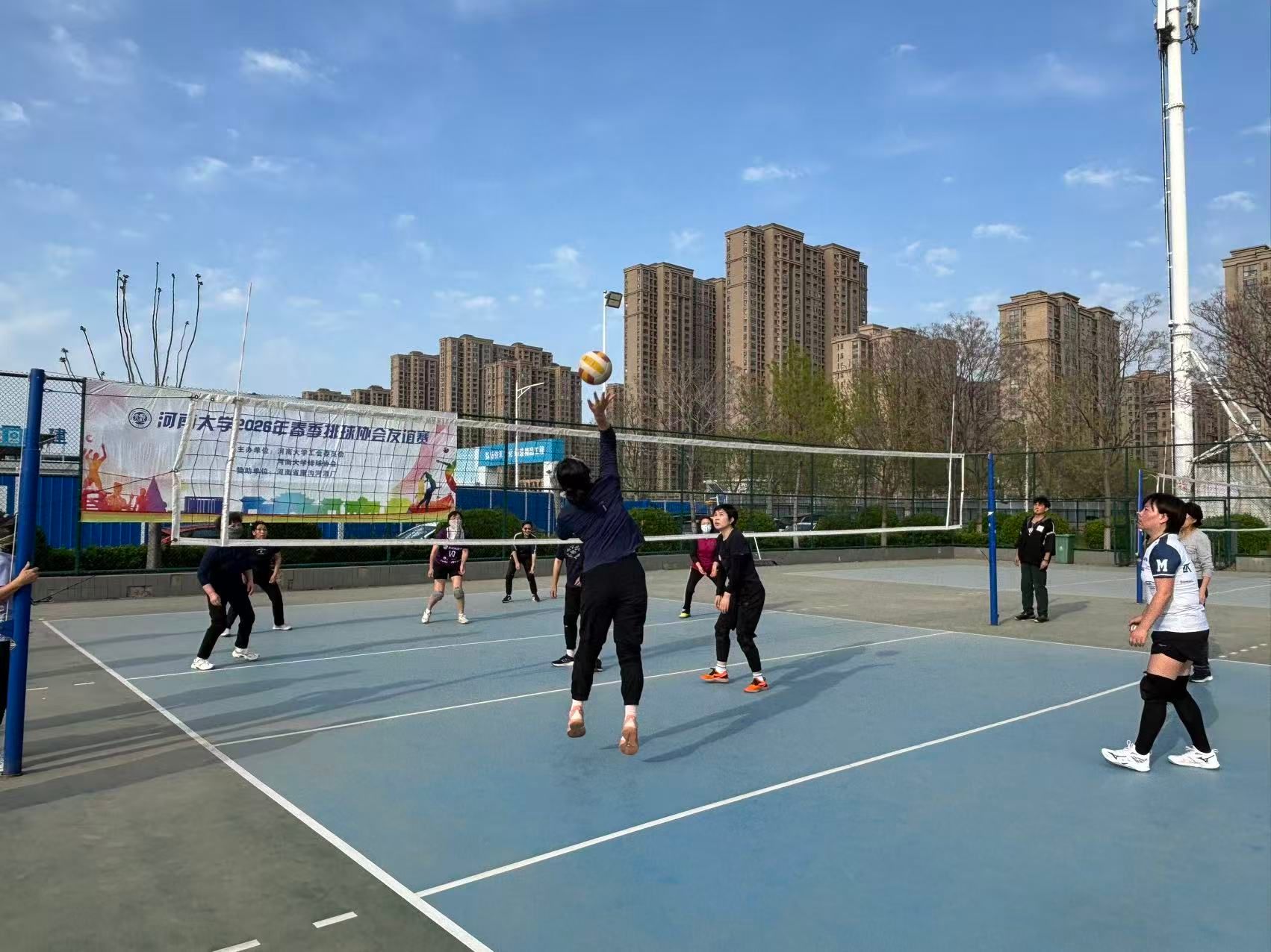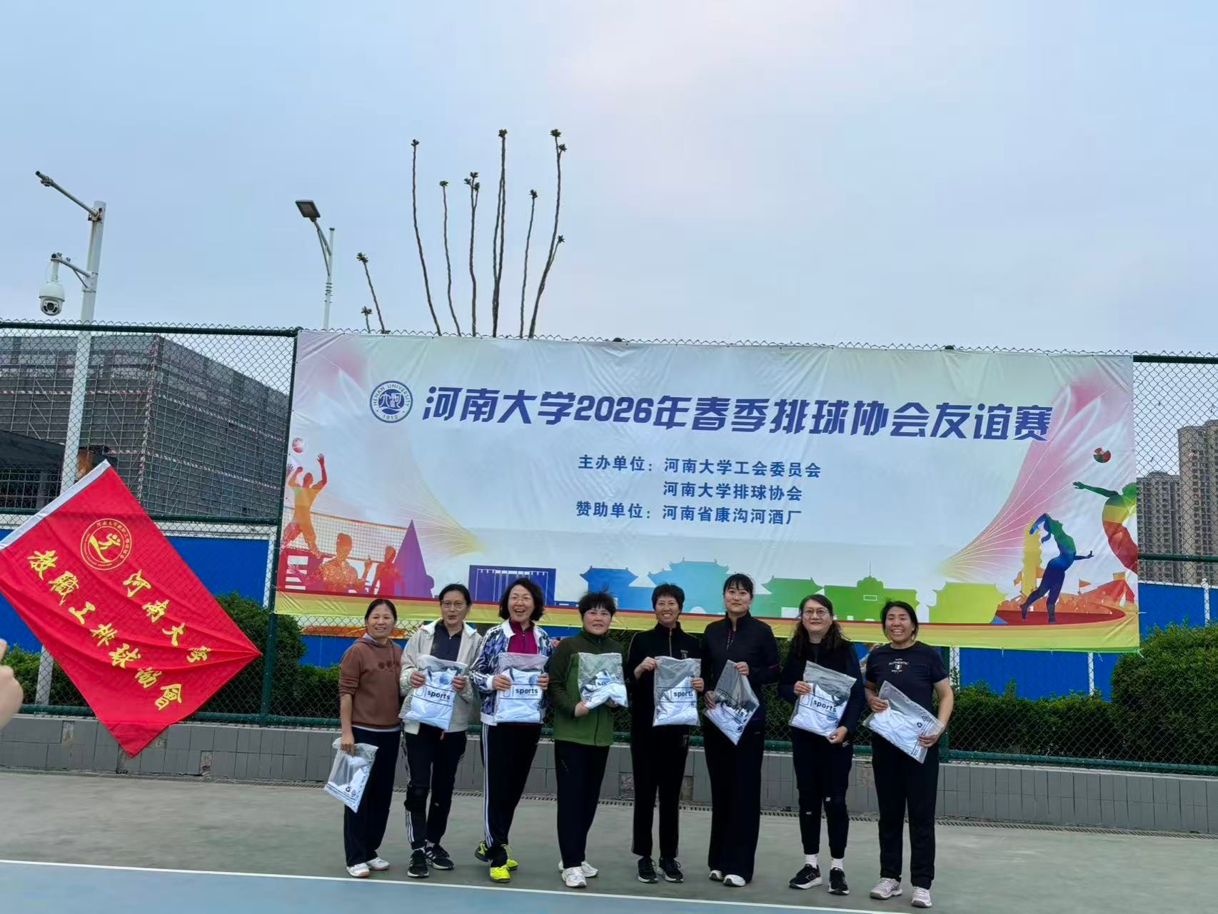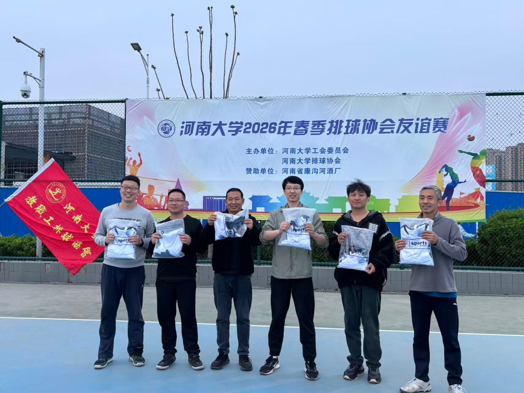 春风送暖,活力飞扬。为积极响应党的号召,丰富校园文化生活,凝聚教职工奋进力量,由河南大学工会委员会主办、河南大学教职工排球协会大力支持、康沟河酒业倾情赞助的 “康沟河杯” 2026 年度春季教职工排球协会友谊赛 于近日在金明校区排球场圆满收官。